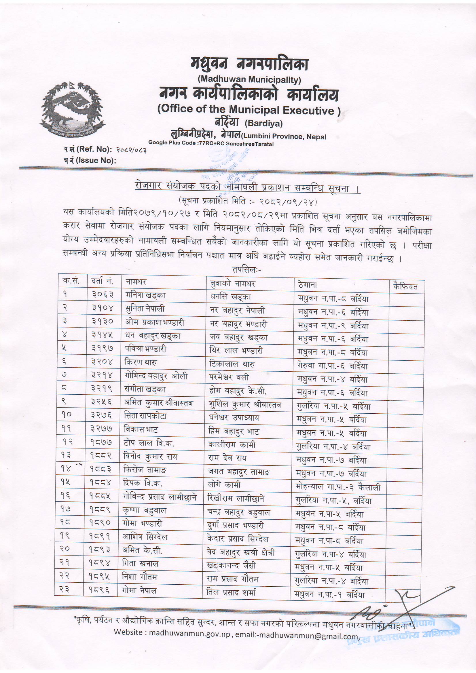 » रोजगार संयोजक पदको नामावली प्रकाशन सम्बन्धी सूचना ।।।