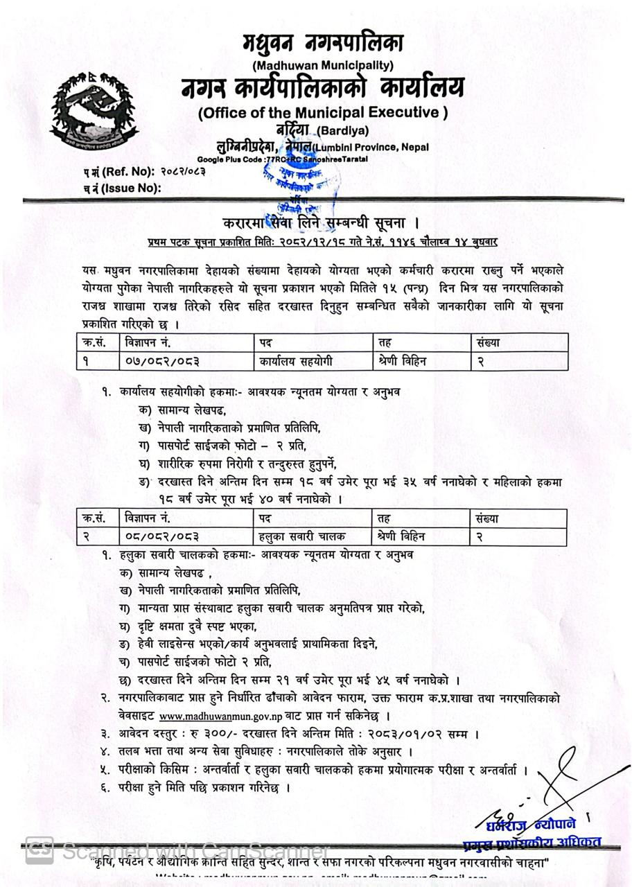 मधुवन नगरपालिकाको सल्लाहकार तथा परामर्शदाता नियुक्ति सम्बन्धी कार्यविधि,२०८२ ।।