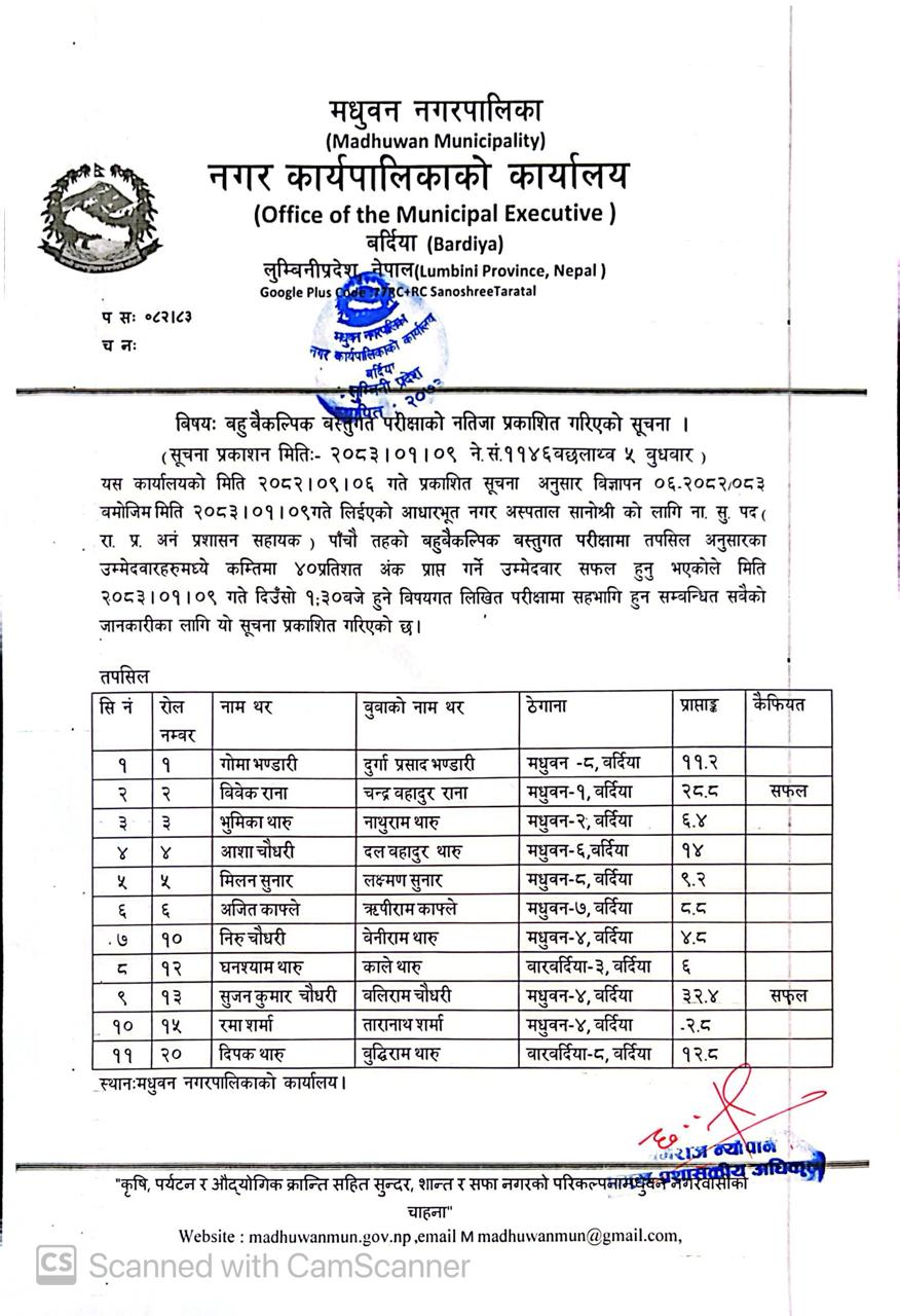 बहु वैकल्पिक वस्तुगत परीक्षाको नतिजा प्रकाशित गरिएको सूचना ।।।