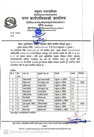 मधुवन नगरपालिकाको सल्लाहकार तथा परामर्शदाता नियुक्ति सम्बन्धी कार्यविधि,२०८२ ।।