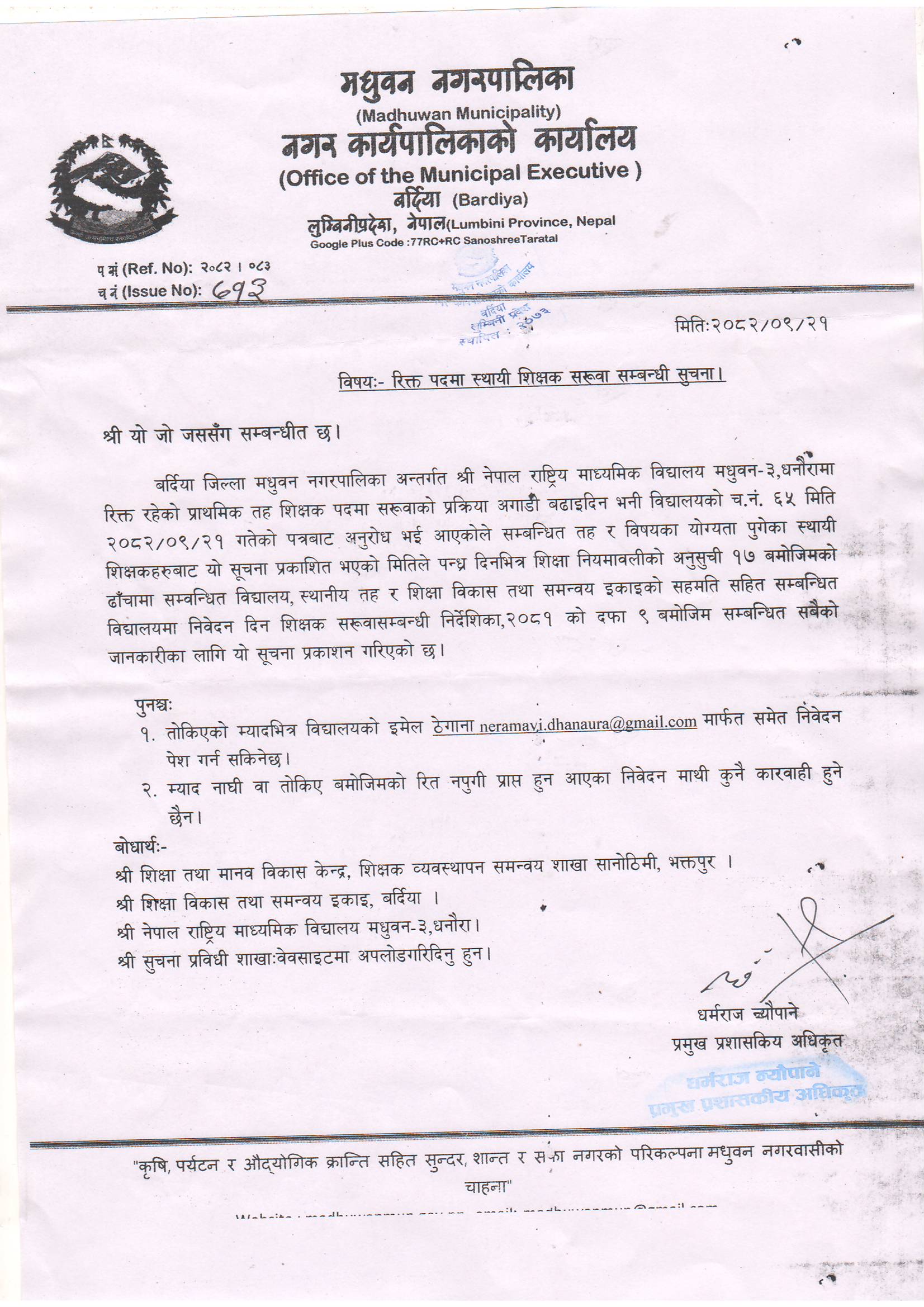 मधुवन नगरपालिका नगर कार्यपालिकाको कार्यालय