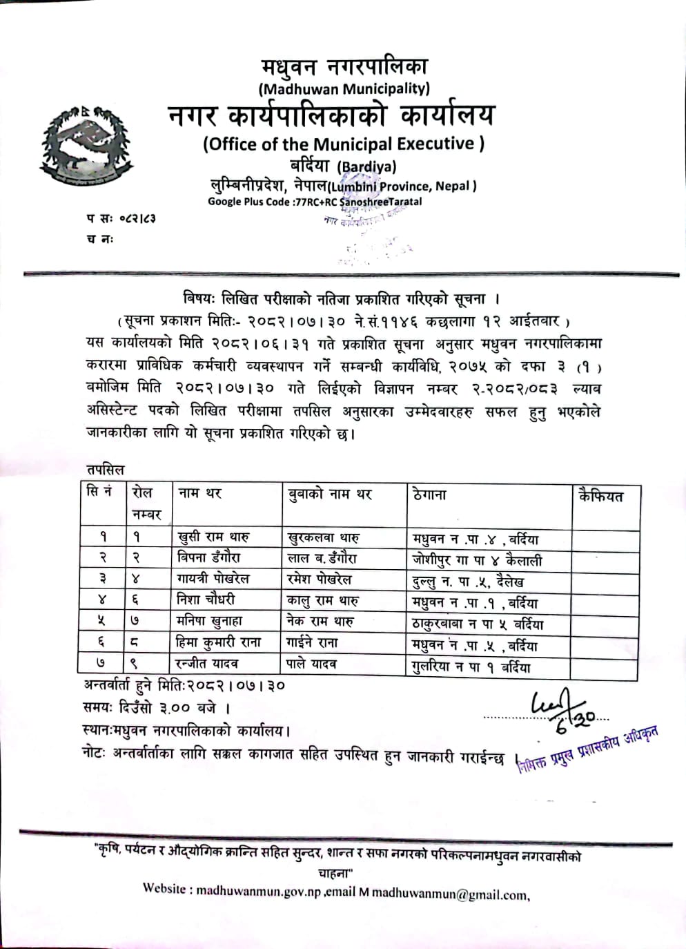 लिखित परीक्षाको नतिजा प्रकाशित गरिएको सुचना ।।।