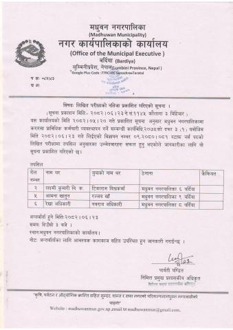 मधुवन नगरपालिकाको सल्लाहकार तथा परामर्शदाता नियुक्ति सम्बन्धी कार्यविधि,२०८२ ।।
