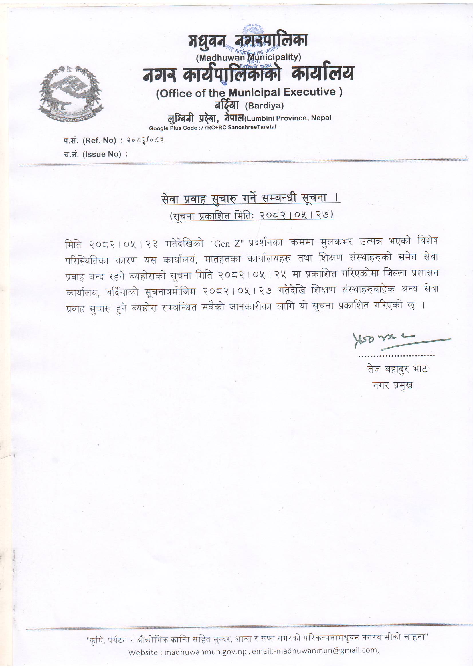 सेवा प्रवाह सुचारु गर्ने सम्बन्धी सूचना ।।।
