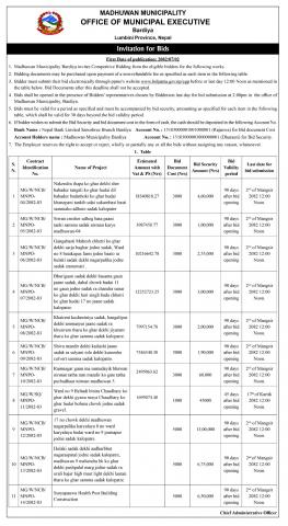 मधुवन नगरपालिका भएर बग्ने कर्णाली गेरुवा र बबई नदीबाट नदीजन्य पदार्थको उत्खनन्/संकलन र बिक्रीवितरण सम्बन्धी टेण्डर/ विद्युतिय बोलपत्र (E-Bid) आह्वानको सूचना ।।।