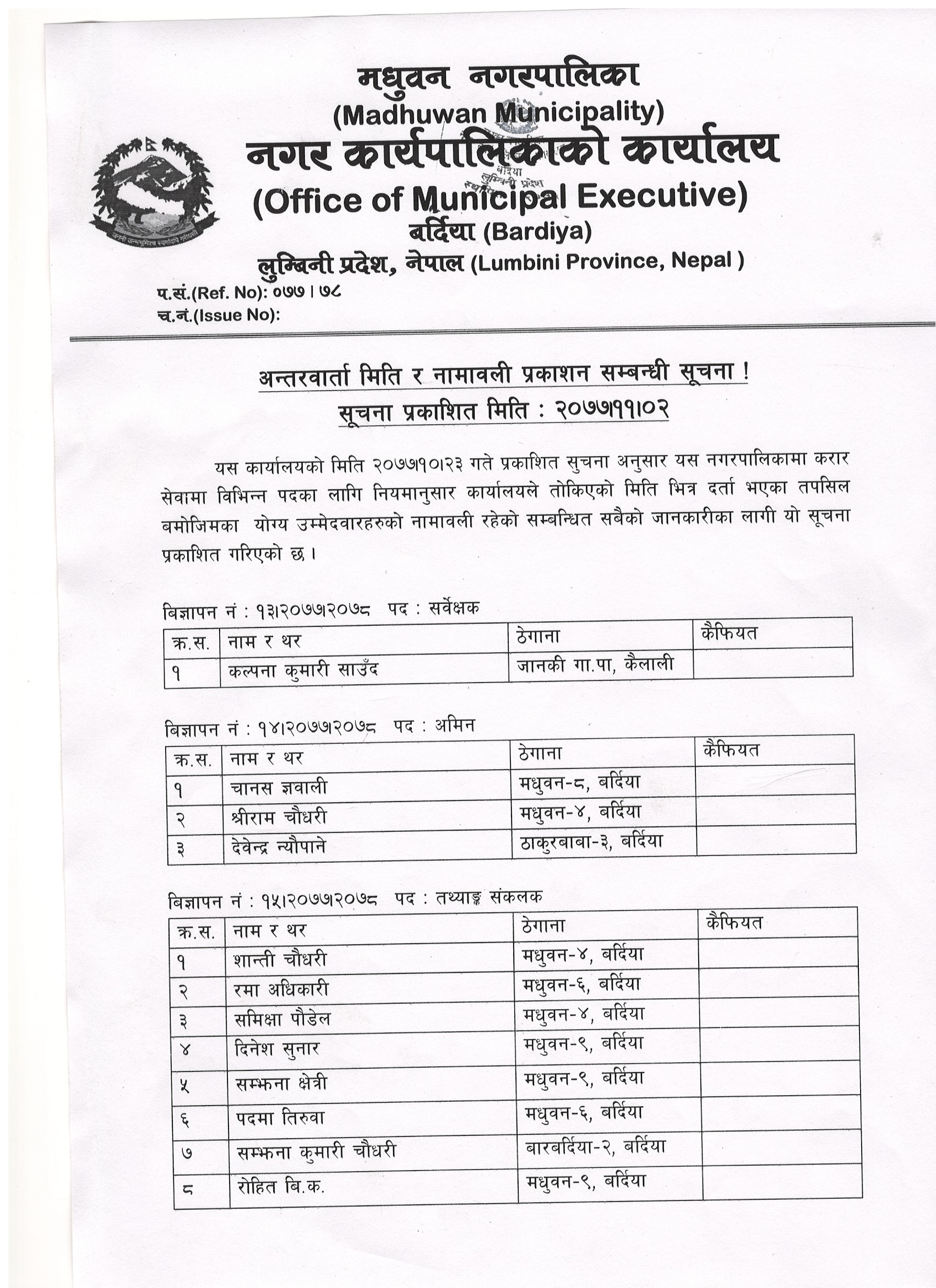 » अन्तरवार्ता मिति र नामावली प्रकाशन सम्बन्धी सूचना !
