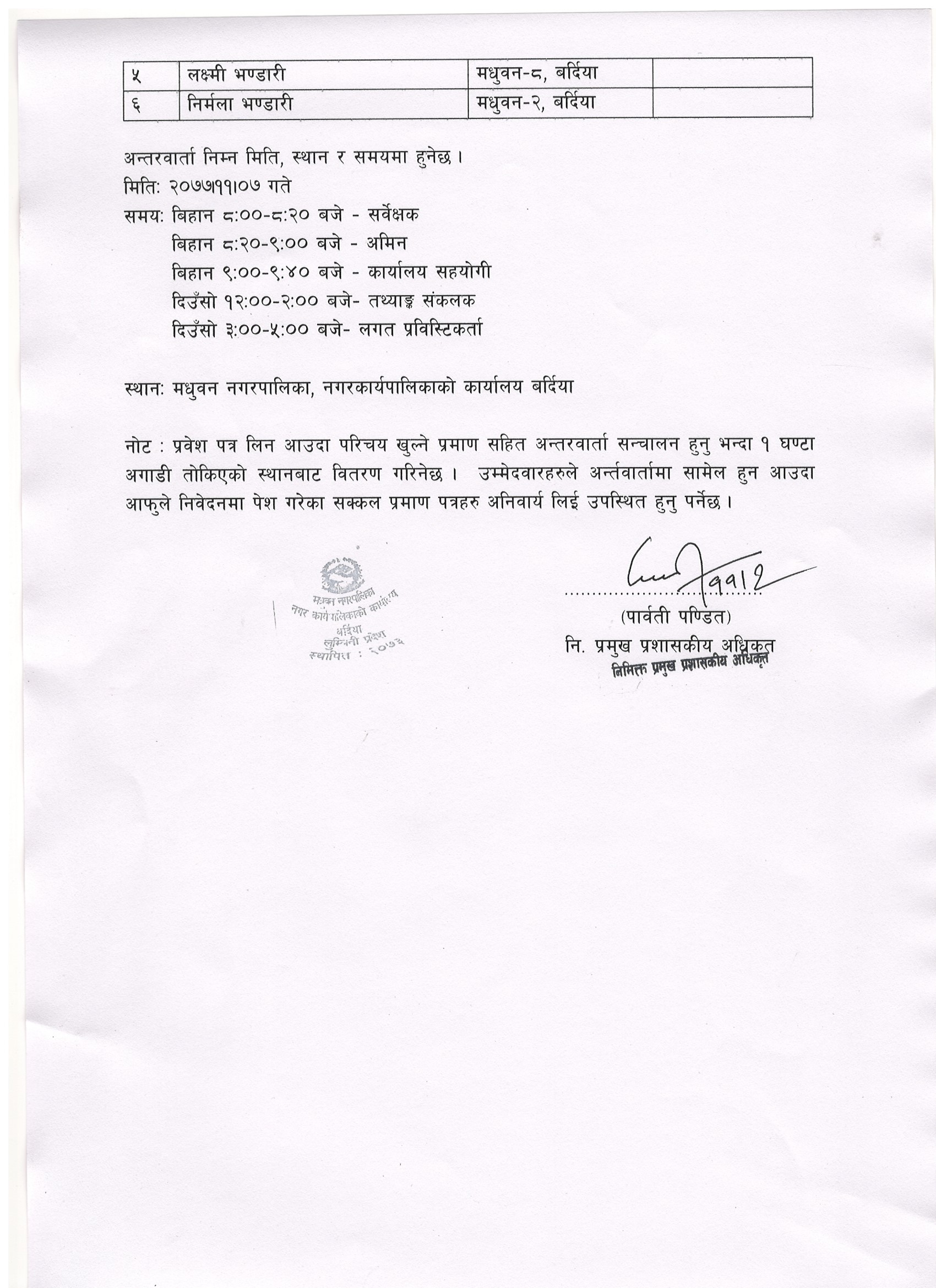 अन्तरवार्ता मिति र नामावली प्रकाशन सम्बन्धी सूचना !