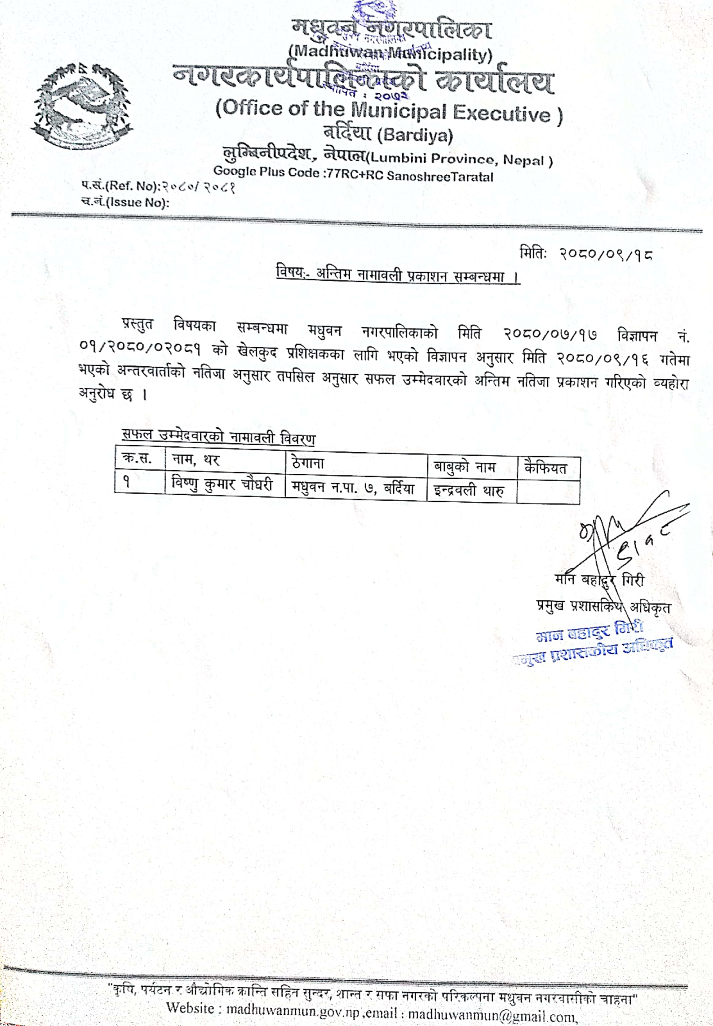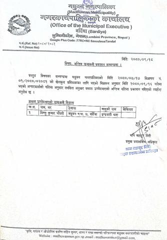 मधुवन नगरपालिकाको सल्लाहकार तथा परामर्शदाता नियुक्ति सम्बन्धी कार्यविधि,२०८२ ।।