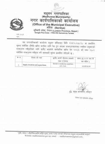 बोलपत्र स्वीृकत गर्ने आशयको सूचना ।।।
