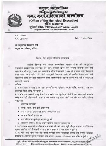 मधुवन नगरपालिकाको सल्लाहकार तथा परामर्शदाता नियुक्ति सम्बन्धी कार्यविधि,२०८२ ।।