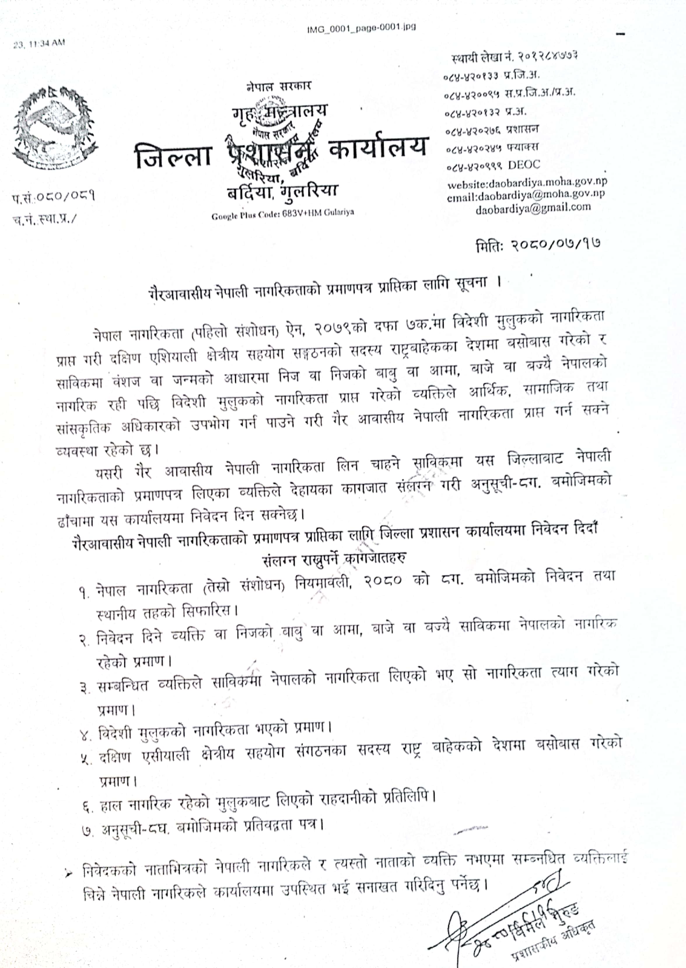 गैरआवासीय नेपाली नागरिकताको प्रमाणपत्र प्राप्तिका लागि सूचना ।
