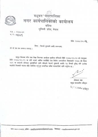 मधुवन नगरपालिकाको सल्लाहकार तथा परामर्शदाता नियुक्ति सम्बन्धी कार्यविधि,२०८२ ।।
