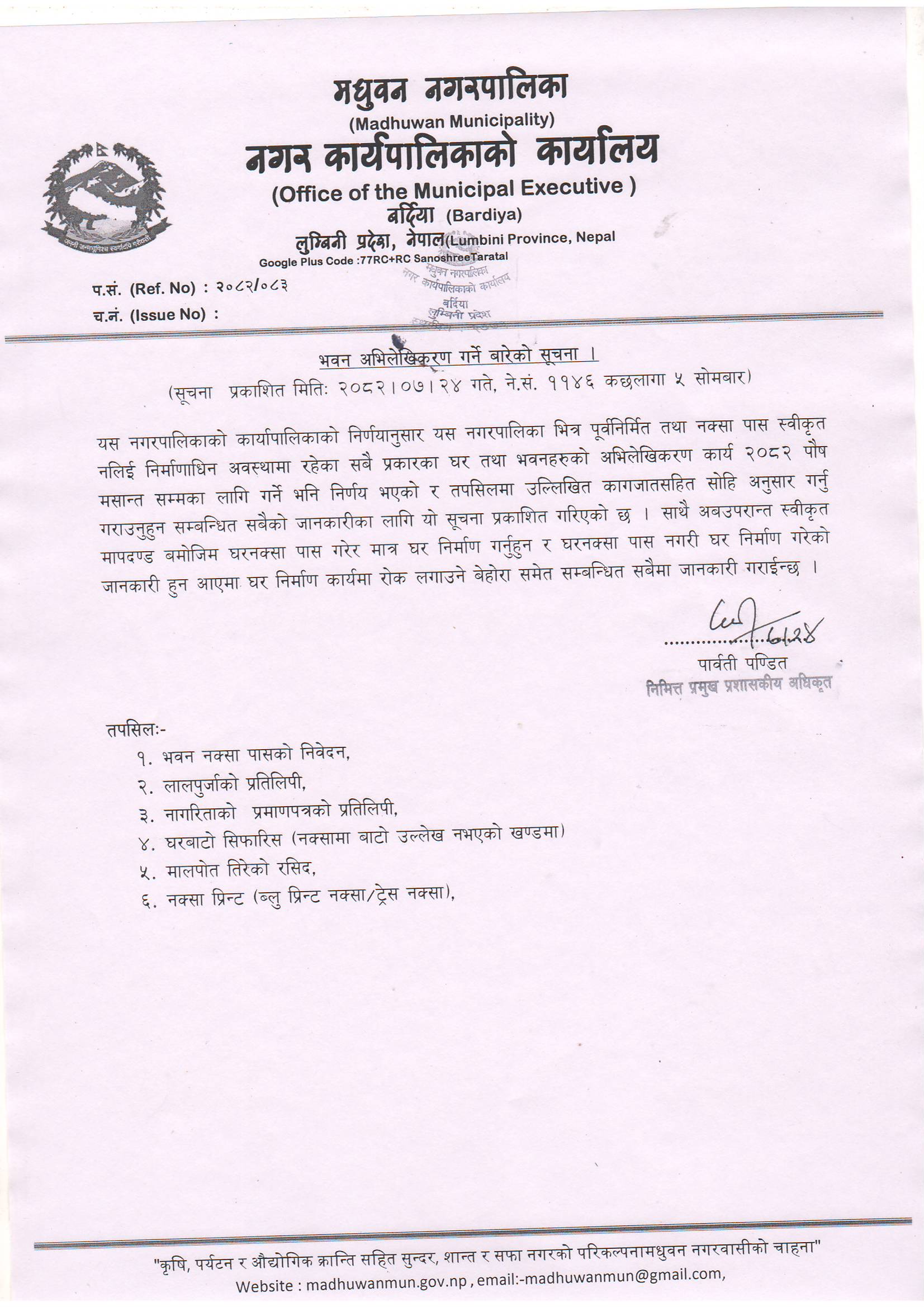 » भवन अभिलेखिकरण गर्ने बारेको सूचना ।।।