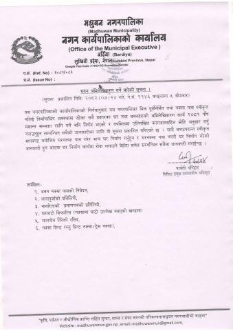 मधुवन नगरपालिकाको सल्लाहकार तथा परामर्शदाता नियुक्ति सम्बन्धी कार्यविधि,२०८२ ।।