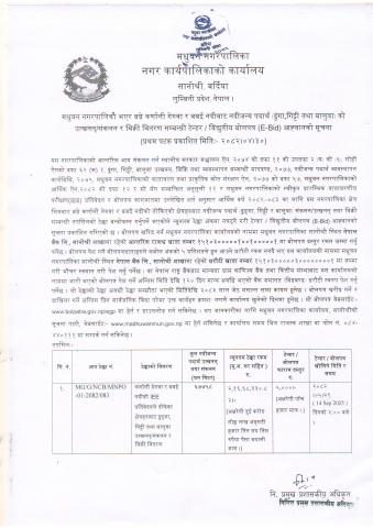Home » मधुवन नगरपालिका भएर बग्ने कर्णाली गेरुवा र बबई नदीबाट नदीजन्य पदार्थ (ढुंगा,गिट्टी तथा बालुवा) को उत्खनन्र संकलन र बिक्री वितरण सम्बन्धी टेन्डर/ विद्युतीय बोलपत्र (E-Bid) आह्वानको सूचना ।।।।