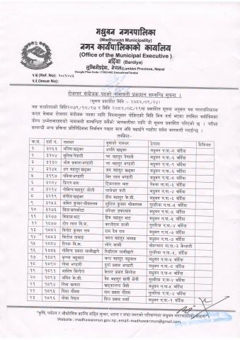 मधुवन नगरपालिकाको सल्लाहकार तथा परामर्शदाता नियुक्ति सम्बन्धी कार्यविधि,२०८२ ।।