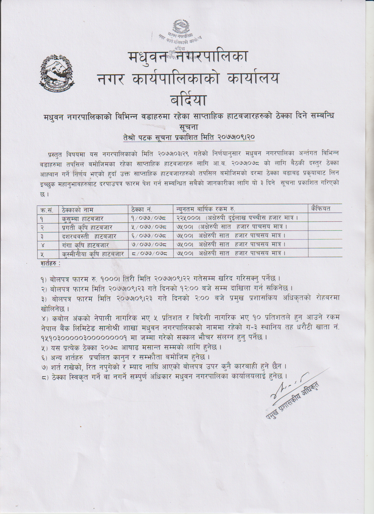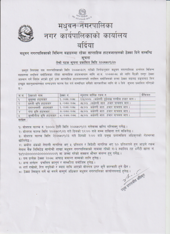 विभिन्न वडाहरुमा रहेका हाटबजारहरुको ठेक्का दिने सम्बन्धि सुचना |