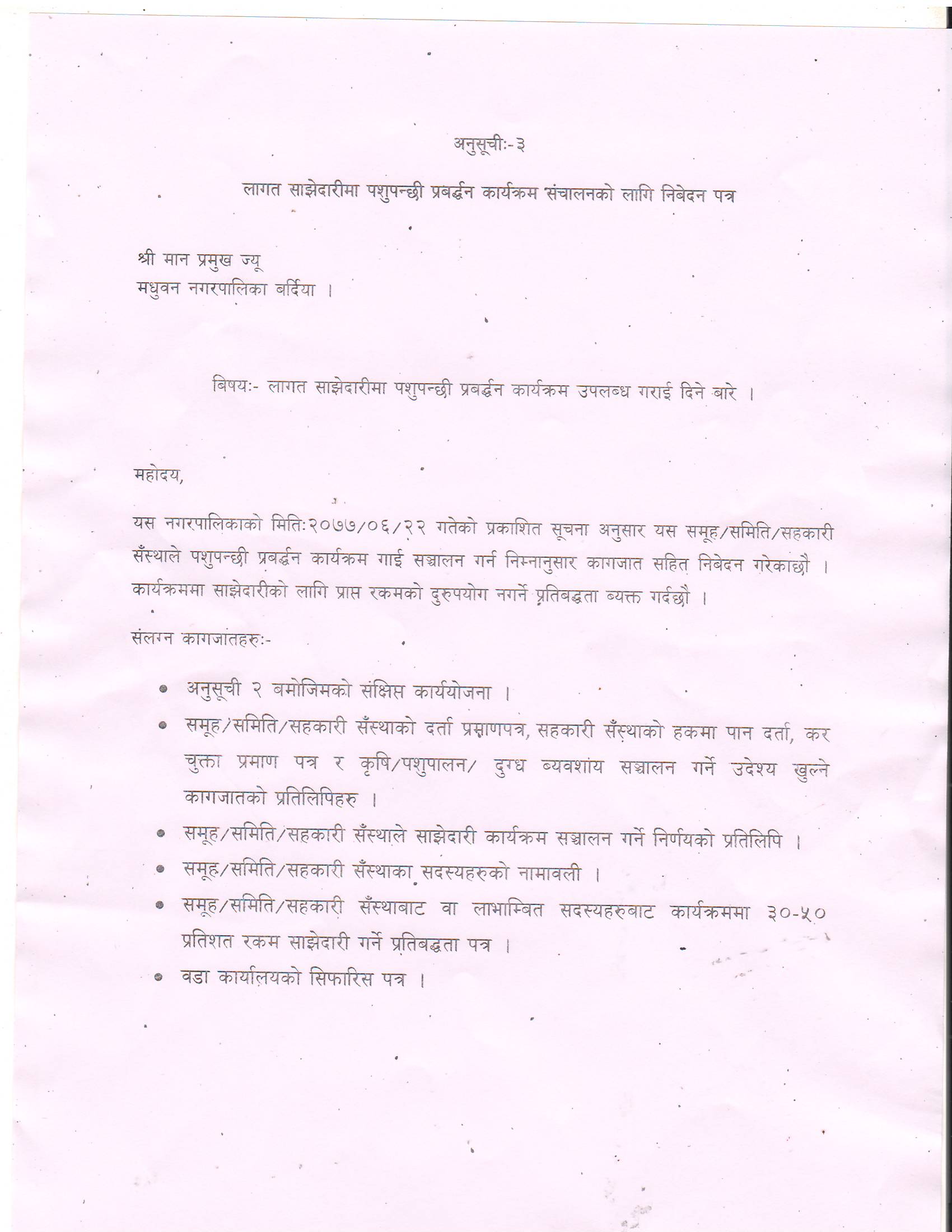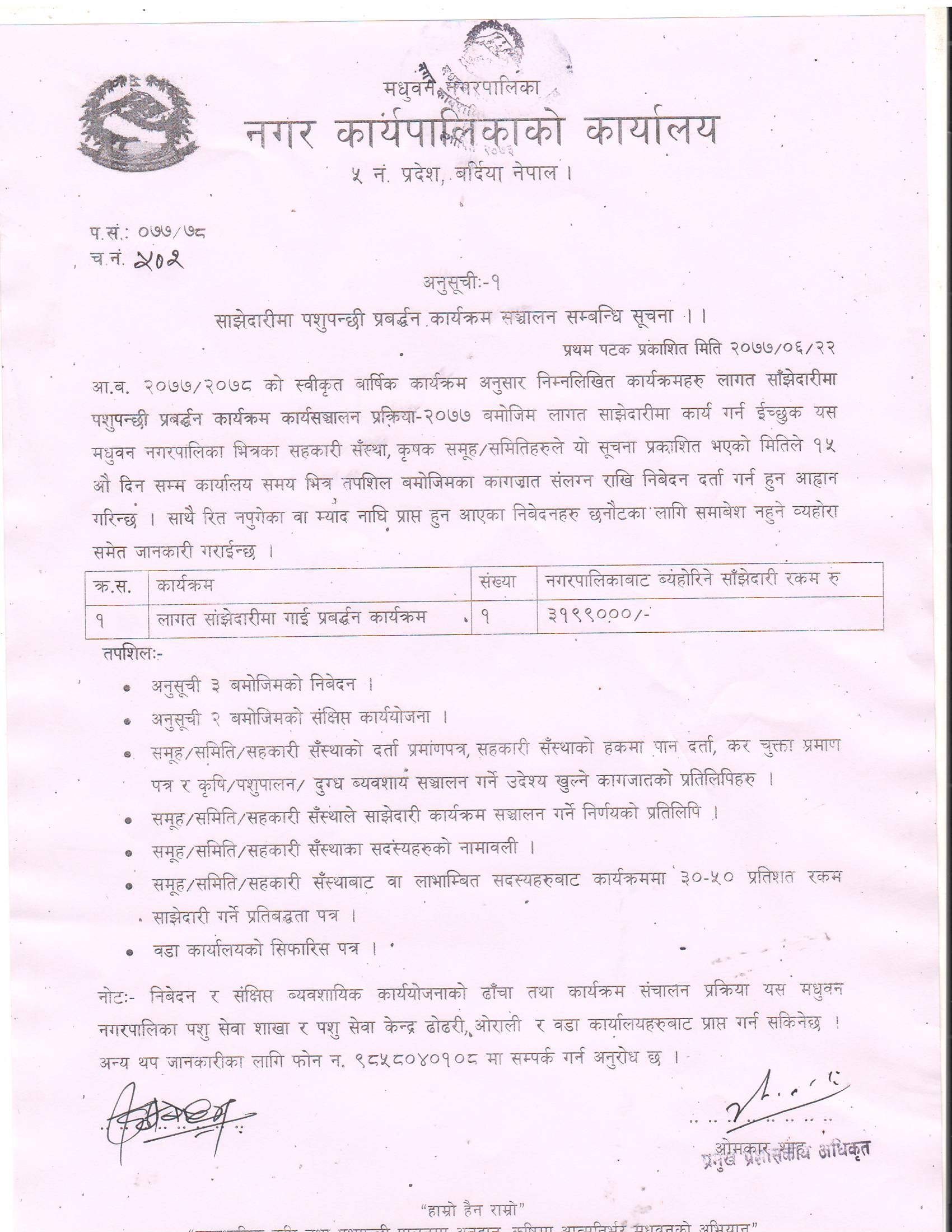 साझेदारीमा पशुपन्छी प्रबर्द्धन कार्यक्रम सन्चालन सम्बन्धि सूचना !