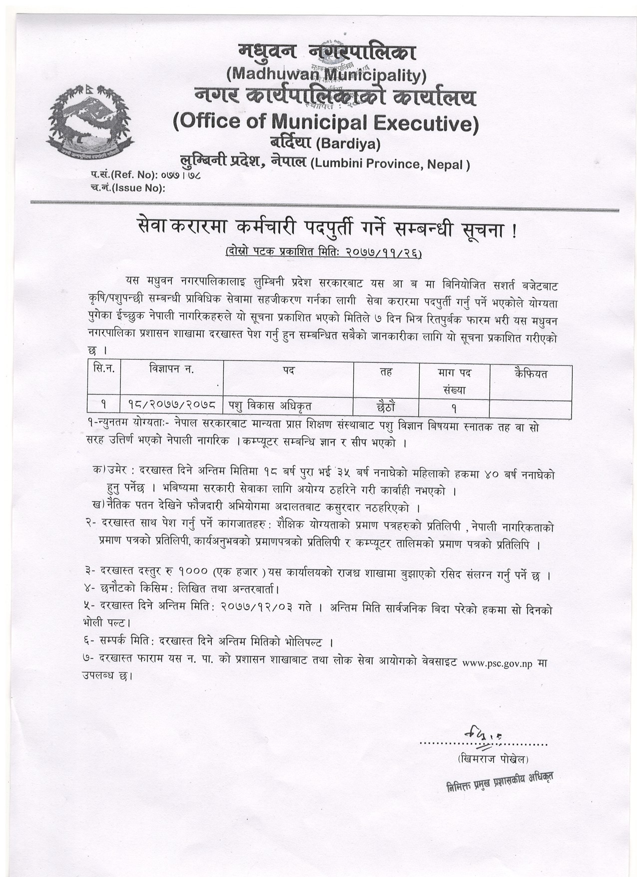 » सेवा करारमा कर्मचारी पदपुर्ती गर्ने सम्बन्धी सूचना !