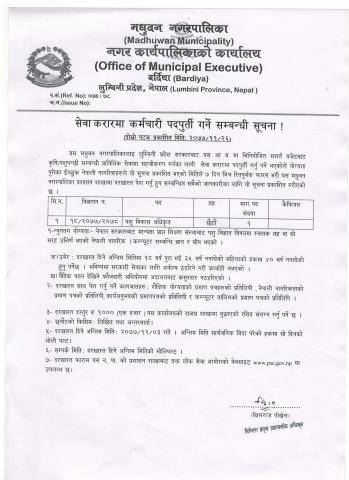 सेवा करारमा कर्मचारी पदपुर्ती गर्ने सम्बन्धी सूचना !